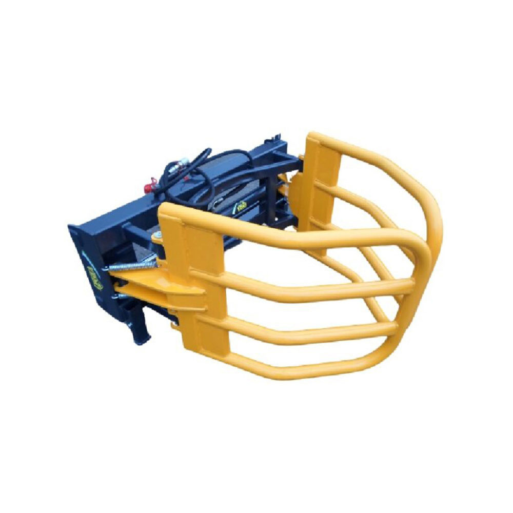 The AG Eco is a bale clamp for round bales. The smallest clamping range is 0.80m, the biggest clamping range is 1.85m. This clamp is typically used on articulated loaders, skid-steer loaders or front loaders. The load capacity is 1000kg.